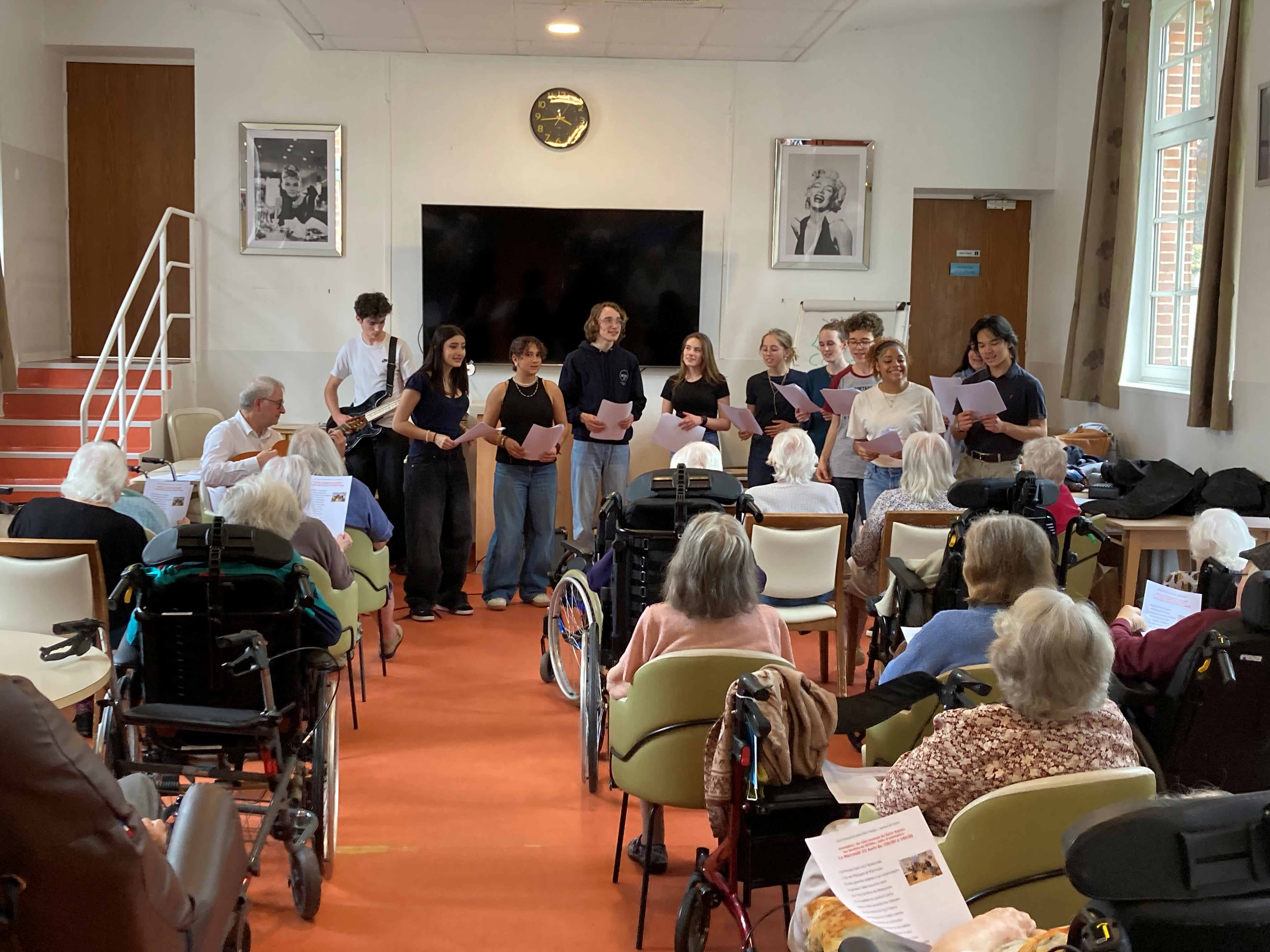 Une fois de plus, la douzaine d’élèves du club musical a démontré la qualité et la solidité de son engagement. Certaines de nos voix féminines ont proposé de délicates mélodies en solo ou en duo, tandis que d’autres élèves accompagnaient à la guitare, à la basse ou au ukulélé. Les résidents enthousiastes ont chanté certains airs avec nous, d’autres ne nous ont accompagné que d’un discret mouvement des lèves, tous nous ont illuminés de visages attentifs ou émerveillés.