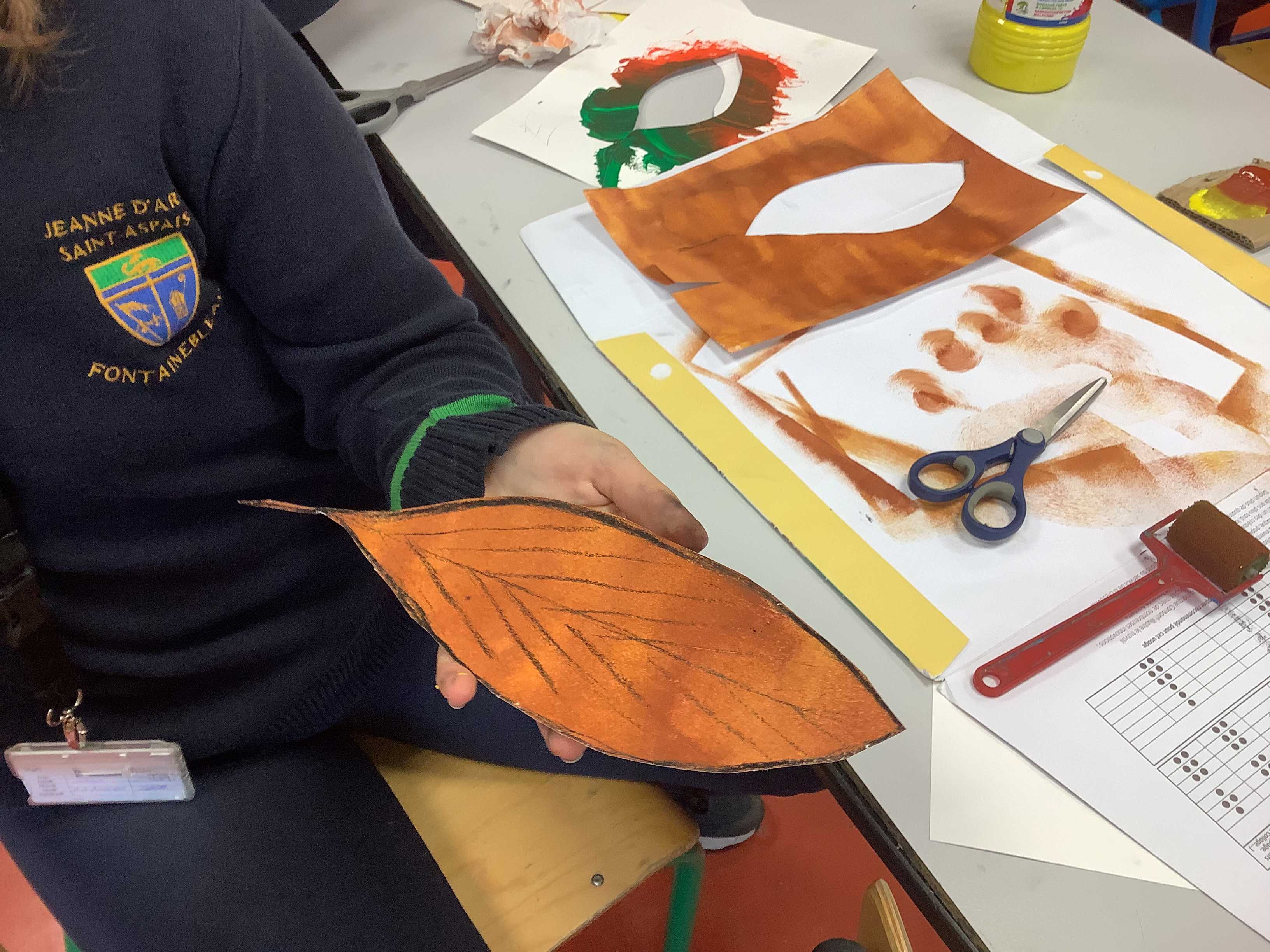 Dans le cadre des ateliers libres du midi, les élèves de « L'atelier nature » (atelier de pratique plastique encadré) se sont essayés à la réalisation d'une œuvre collective sur le thème de l'automne.