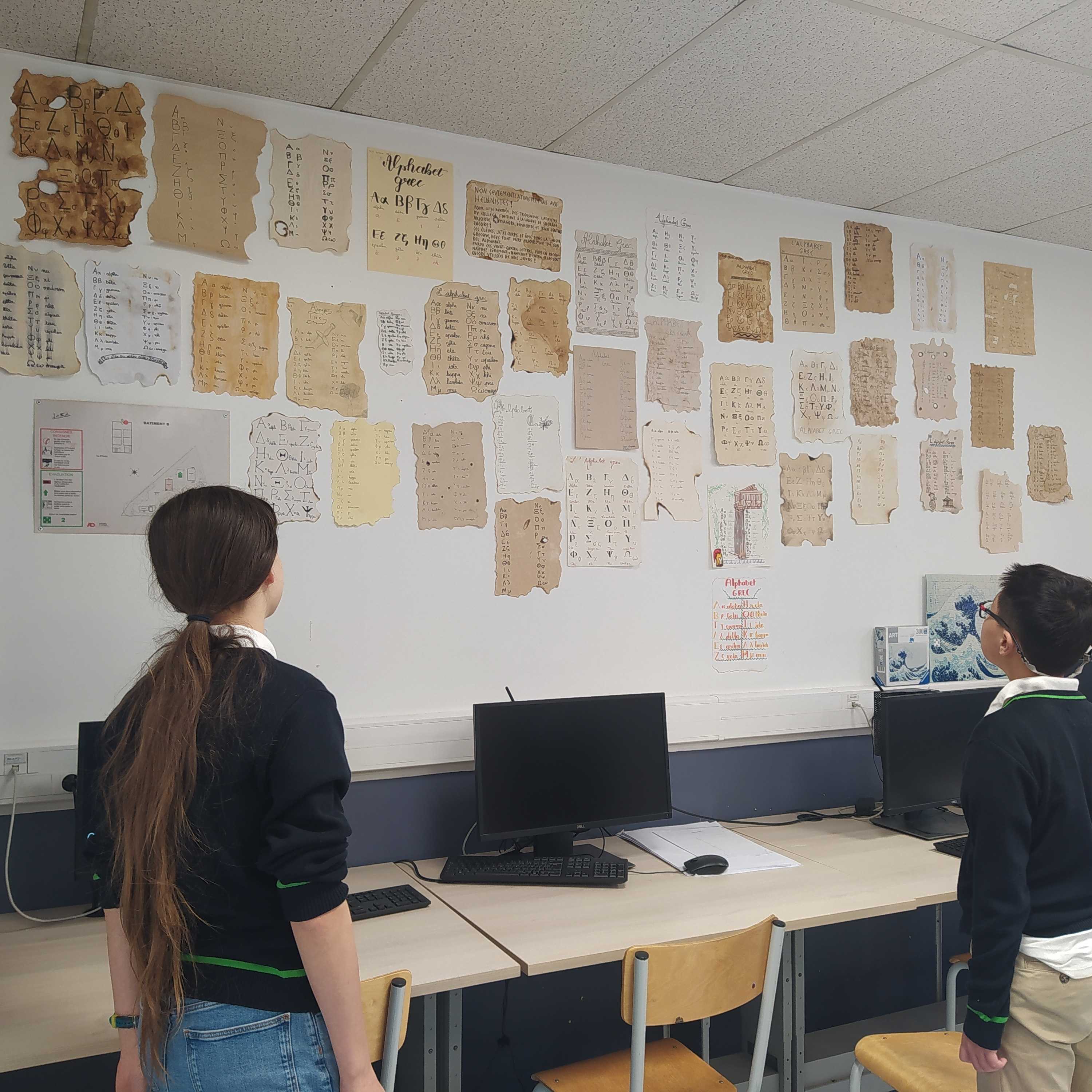 Entre créativité et précision, nos élèves se sont initiés à l'écriture grecque et ont donné vie à de très belles productions désormais exposées au CDI
