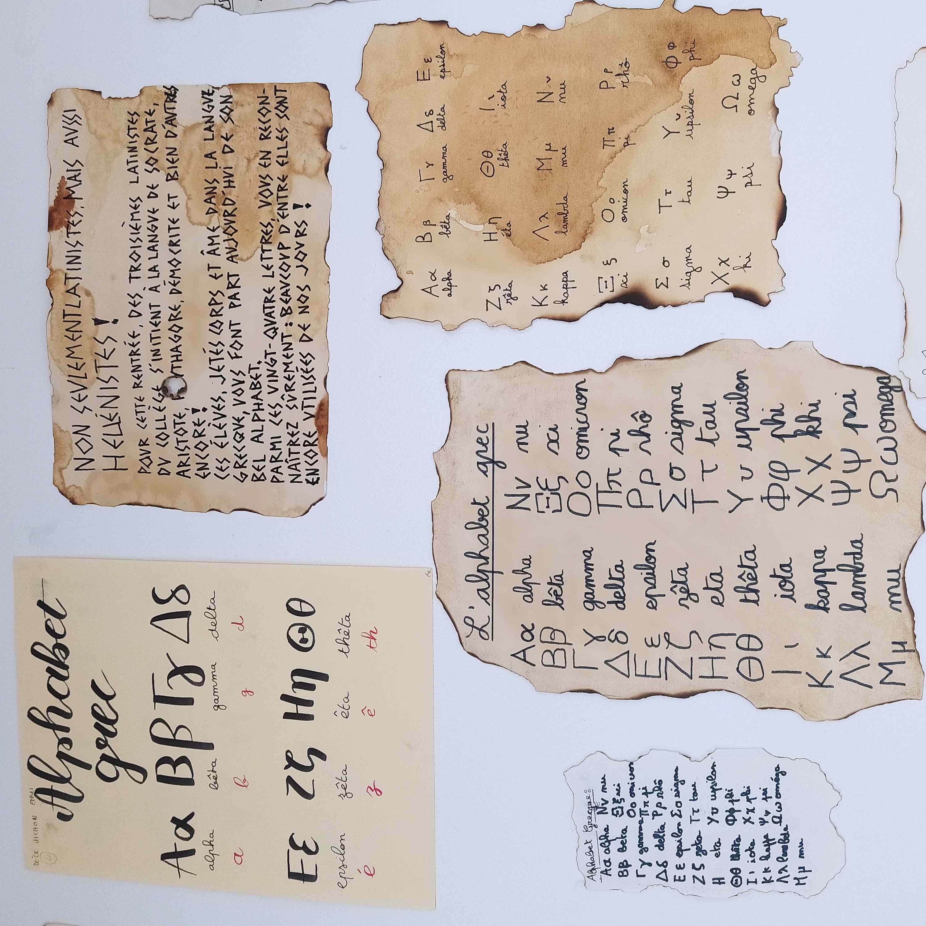 Les latinistes de 3ème, ont réalisé chacun à leur manière, un parchemin illustrant l'alphabet grec.